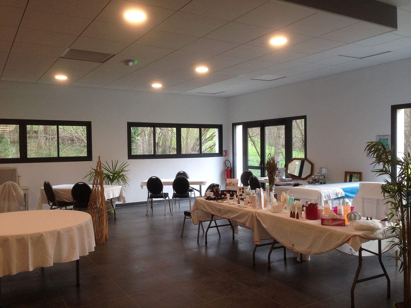 Salle “Le Prat” : 190 m² modulable, plain-pied, jusqu’à 150 assis / 170 debout