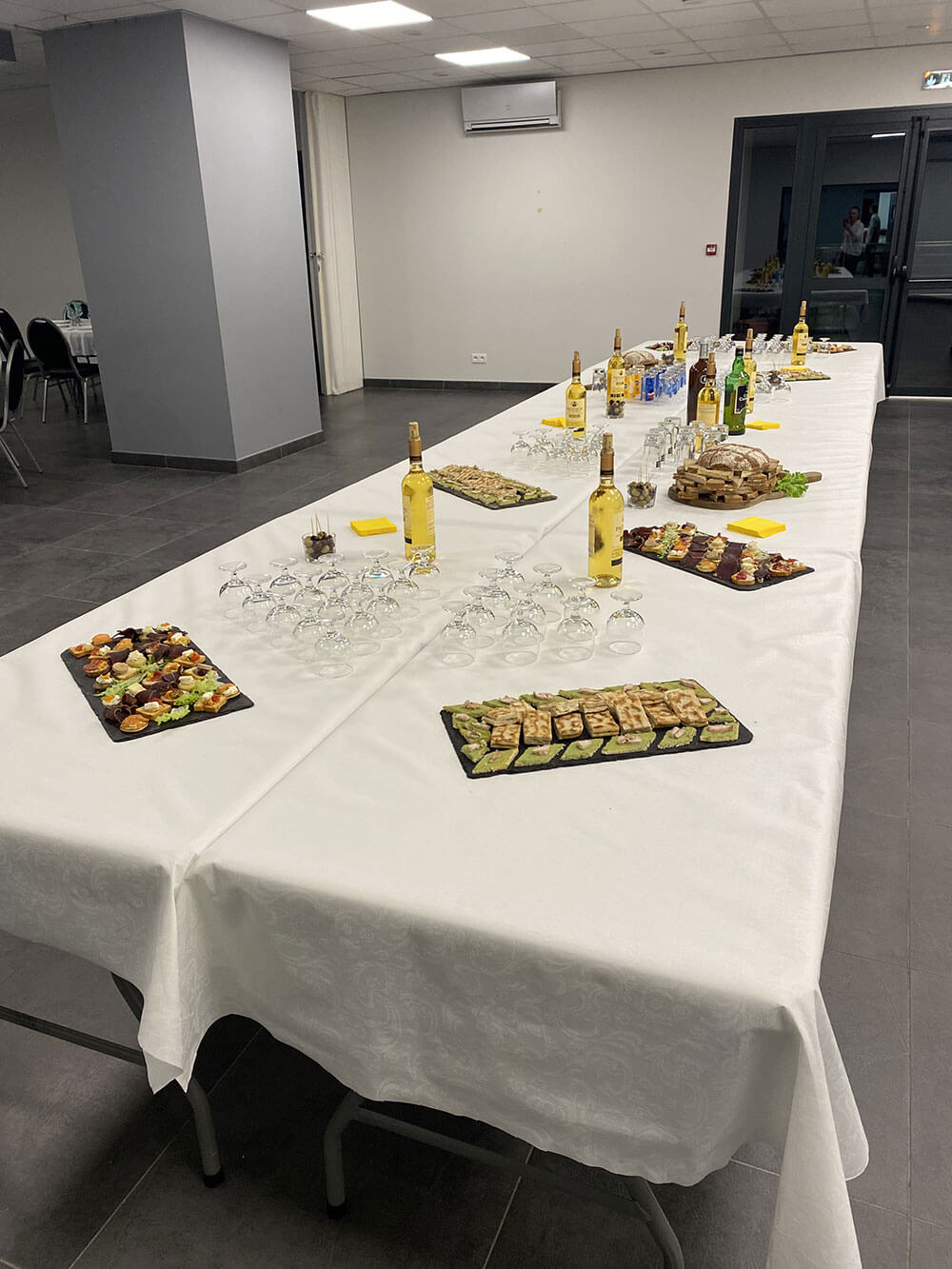 Accès traiteur facilité : emplacement camion, frigo, bac à plonge, micro-ondes