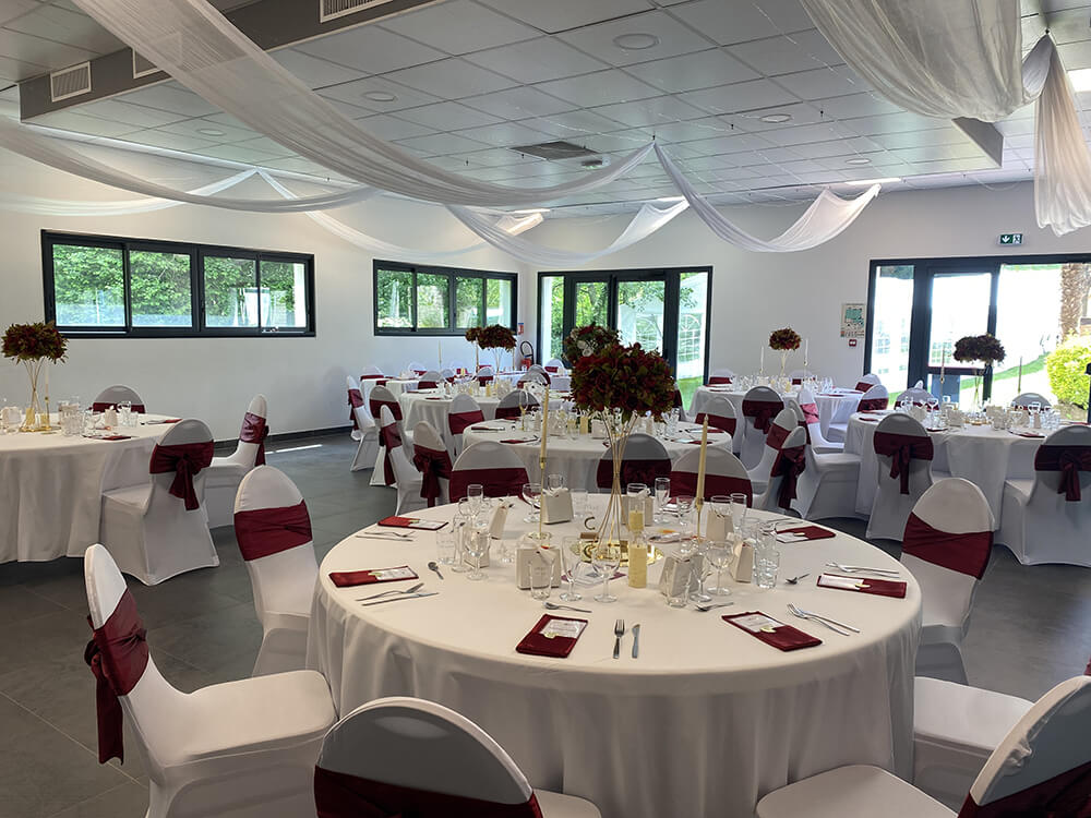Imaginez votre vin d’honneur au bord de la piscine, entouré de verdure, suivi d’un dîner dans une salle baignée de lumière…