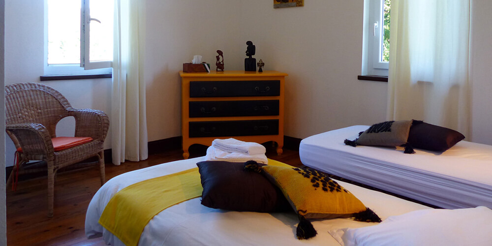 Hébergement sur place : gîte de 15 personnes, chambres individuelles, literie fournie